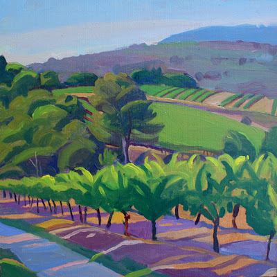 Thanks, Heather. The grape vines in the foreground have a "reaching up" kind of gesture that's interesting to paint. That purple/orange soil is not exaggerated color--if anything, I didn't get those colors as bright as they are in reality at this time of day.